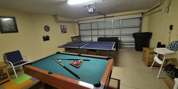 fully equipped for those who wish to cook and perhaps wish to dine alfresco on the outside pool decking area. Additional entertainment can be found in the garage / games room where you can play pool, football, table tennis or darts. There is also a fully equiped laundry room.